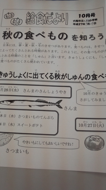 給食にも秋が旬の食べ物が登場しますので、お楽しみに♪