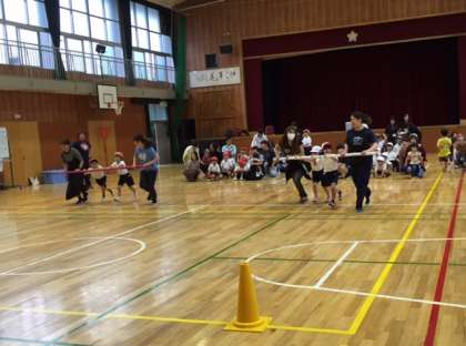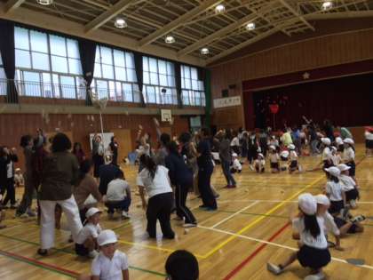 本日5時間目の学年集会は1.2年生合同で玉入れと台風の目をしました。おうちの人と一緒に汗びっしょりになりながら室内ゲームに取り組む子どもたちは笑顔いっぱいでとても楽しそうでした。