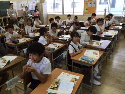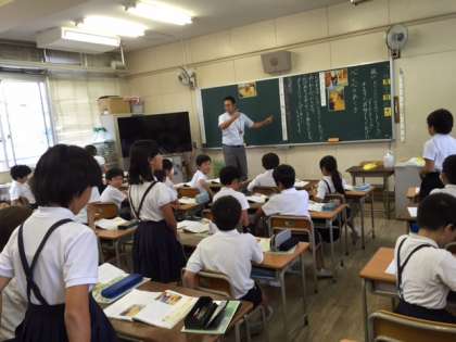 9月28日(金)大阪市教育委員会指導部「英語授業力向上推進チーム」より講師先生を招聘し、外国語活動公開授業を4年生で実施しました。