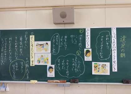 道徳の教材「遠足の朝」を読んで、学習をしました。「遠足の朝」は、遠足の前日にグループを決めるとき、仲間はずれにされてひとりぼっちになってしまった友だちに、「いっしょにグループになろう」と勇気を出して声をかけるという内容の教材です。子どもたちは、自分の経験と重ねながら、それぞれの登場人物の気持ちを考えていました。