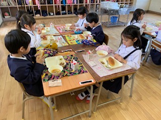 初めての給食を、「おいしい!」と言いながら喜んで食べていました。