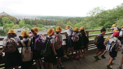 今日は高学年の遠足です。奈良公園でオリエンテーリングや東大寺の見物をする予定です。心配していた天気も良くなり、遠足日和になりました。