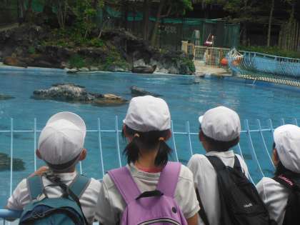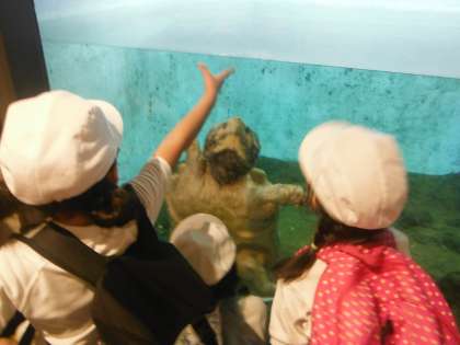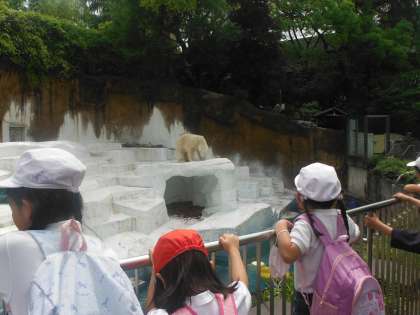 写真は上から人気者のホッキョクグマ、アシカ、ゾウガメです。ゾウガメが居た「アイファー」(爬虫類生態館)にはワニやヘビも居ました。他にもフラミンゴ、コウモリ、ペンギン、トラ、チンパンジー等、たくさんの動物たちに子どもたちは出会っています。