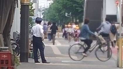 今朝も警察官の方に見守り活動を行っていただきました。いつもありがとうございます。