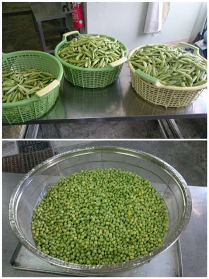 九条東小学校の143名分と、花乃井中学校の620名分のえんどうです。