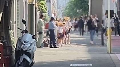 今朝の登校の様子です。今日も警察官の方が見守り活動を行っていただきました。今週一週間、本当にありがとうございました。