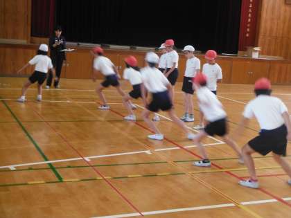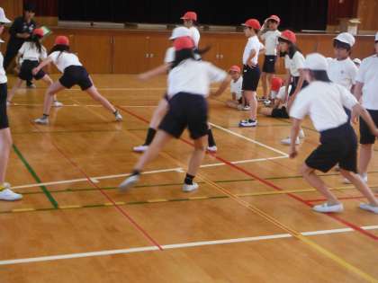 本日〔5月21日(火)〕の6校時、5年生は講堂で反復横とびと立ち幅跳びの記録を測りました。みんな、一生懸命に横方向への俊敏な動きに取り組んでくれました。どんな工夫をしたか、何回できたか等、ご家庭で色々とお話ししてください。