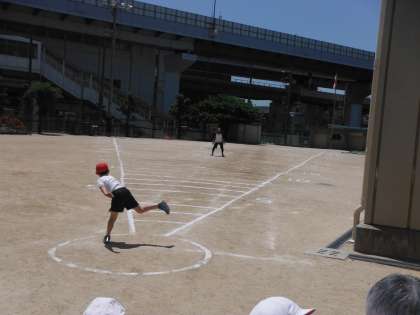 昨日〔5月23日(木)〕から、運動場でソフトボール投げが始まりました。肩慣らしを何度か行った後、本番では二回投げて計測します。気持ちの良い青空の下、子どもたちの元気いっぱいの力投が続きました。
