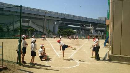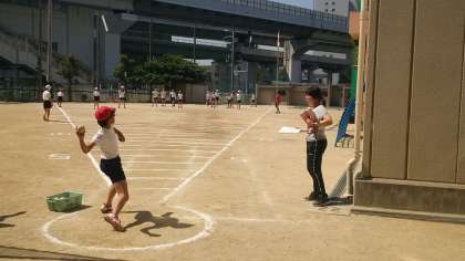 本日〔5月24日(金)〕の6年生です。男女共にフォームがきれいな子どもがたくさんいました。成長とともに、みんな、もっと投げられる様になると思います。