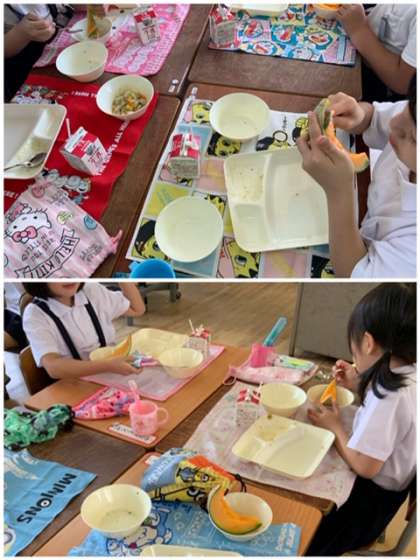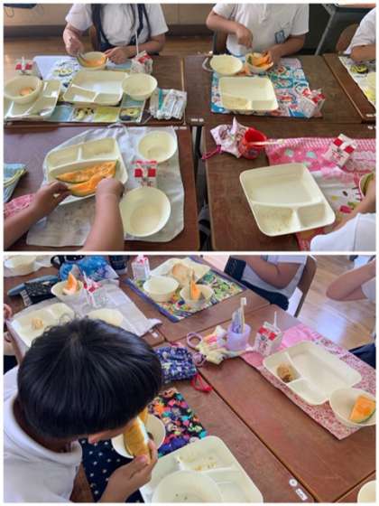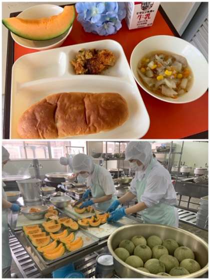 6月5日(水)の給食は、おさつパン、カレードリア、スープ、クインシーメロン、牛乳でした。