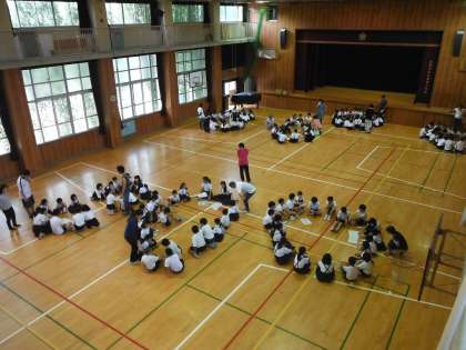 今朝の児童集会は7月6日(土)に開催される「九条東フェスティバル」のたてわり班で行うお店を話し合いました。どの様なお店が出店されるのでしょうか。とても楽しみです。