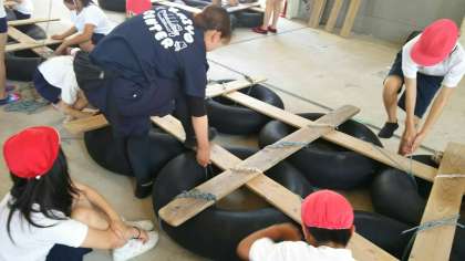 現地のスタッフや引率の先生たちも手伝って、いよいよ完成に近づいています。