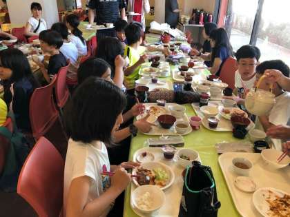 午後からのイカダ造りで消費した体力をしっかりと回復し、この後の夜の活動でも楽しい思い出をいっぱい作ってほしいです。
