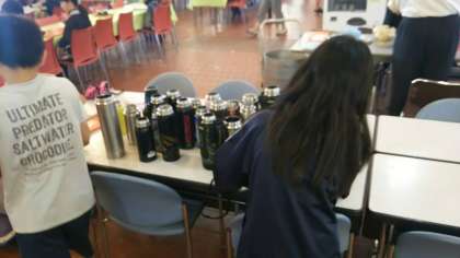 食事の準備と並行して、自分たちが飲むお茶の準備も係で分担して行います。