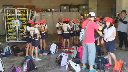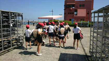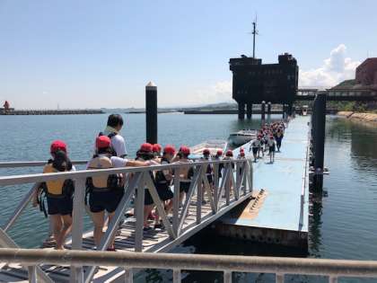 艇庫で自分サイズのライフジャケットを身につけ、いよいよ自分たちが乗るカッターが待つ桟橋へ向かいます。