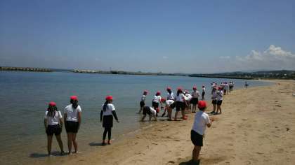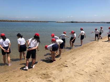 カッター訓練が終わり、おやつのジュースを飲んで気持ちをリフレッシュしたあと、最後の野外活動として、浜辺で自由遊びを楽しみました。