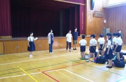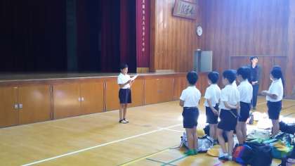 予定通りの時刻に帰校式を行いました。校長先生からのお話の後、付き添いの先生方からの一言、児童代表のあいさつがありました。今日はゆっくりと休息を取って、明日、各自でしっかりと振り返りをしてほしいと思います。