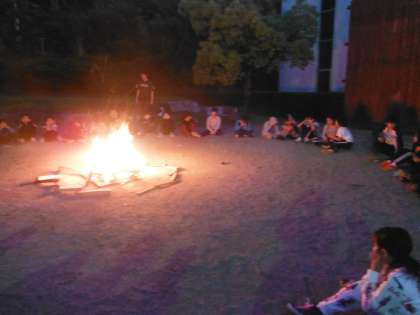 一日目の夜、キャンプファイヤーを行いました。各班で楽しいゲームを出し合い、みんなで盛り上がりました。