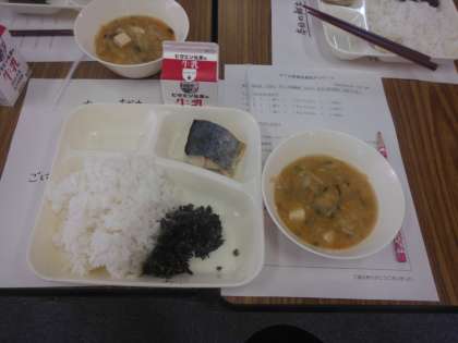 「学校給食について」の講話のあと、給食を試食していきました。