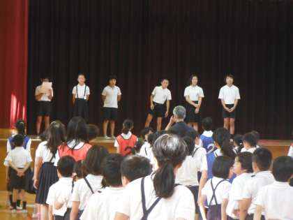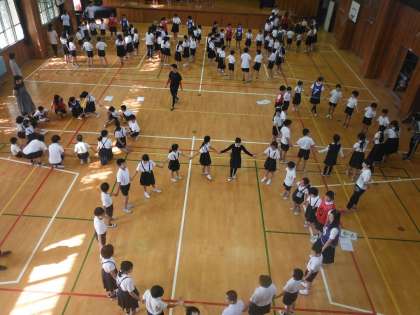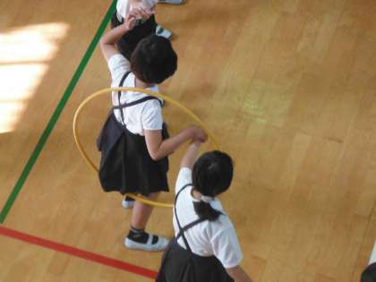 今朝の児童集会は「フラフープ・リレー」でした。上級生の技を1年生に上手に伝えられた班が早かった様です。今日もみんなで盛り上がりました。
