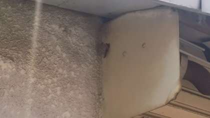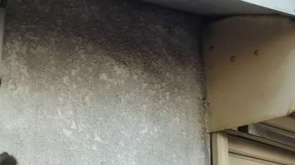 ※左の写真の中央部分に巣がありました。数匹が巣の周りを活発に活動しています。右が除去後の写真です。