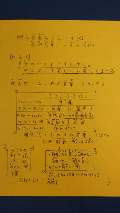 各班毎に1年生から6年生が力を合わせ、準備をどんどん進めています。今年も楽しいお店がたくさんできそうです。