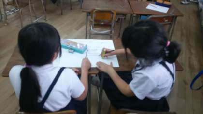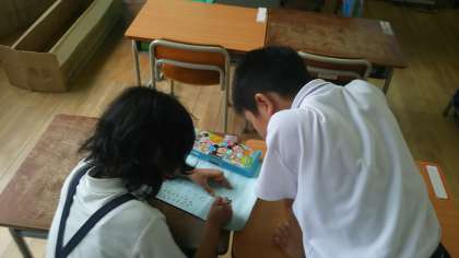 本日〔7月3日(水)〕の準備風景です。子どもたちは一生懸命です。どんなお店になるのでしょうか。とても楽しみです。