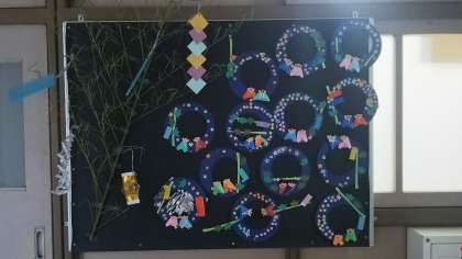 校内には数か所、七夕の掲示や笹飾りが飾ってあります。笹飾りには子どもたちの願い事が書いてありますので、ぜひ、ご覧ください。自分のことだけではなく、九条東フェスティバルの成功を祈ったり、「(クラスの)みんなが…」という内容の願い事もたくさん書いてくれています。