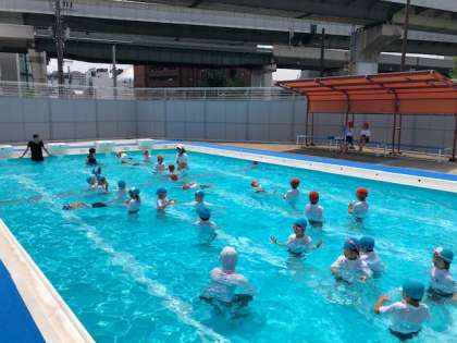 昨日〔7月8日(月)〕、低学年と中学年が水泳学習の中で着衣泳をしました。万が一、服を着た状態で川や湖、海などに落ちた時にどんなことが起こるのかを体感しました。みんな濡れた服が水を吸って重たくなり、いつもの時ほど自由に動くことができなくなりました。そのあとペットボトルを使って浮く練習をしました。もし遭難者が出た場合にはからのペットボトルを投げてあげてください。体操服がびしょびしょに濡れていると思いますので、洗濯よろしくお願いします。