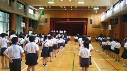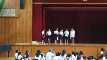 1学期最後の児童集会は「どうぶつビンゴ」でした。たてわり班で9つのマス目に書く動物の名前を相談しました。ビンゴになるのに少し時間がかかりましたが、最後は4つの班がビンゴになりました。くじ引きで選ばれた動物の名前が発表されるたびに、大きな歓声があがりました。