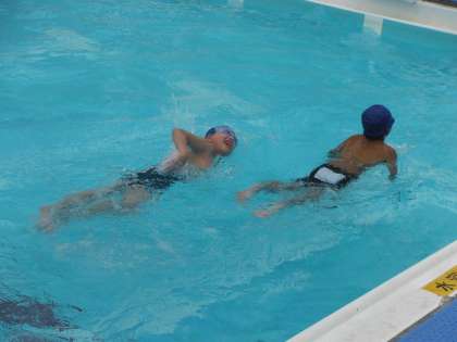 本日〔7月22日(月)〕の4年生、5年生、6年生の水泳指導の風景です。後半は泳力別に分かれて、それぞれ25mを泳ぎました。心配された雨もほとんど降らず、子どもたちは気持ちよさそうに泳いでいました。