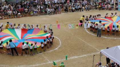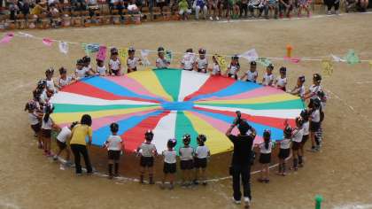 本校運動場で九条幼稚園運動会が10月4日に行われました。多くの保護者の方に見守られて、子どもたちは元気いっぱいに演技していました。