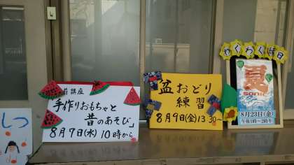 いよいよ8月に入りました。いきいき活動の今月の催しのお知らせです。