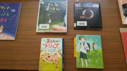 図書室に残っていた今年度の課題図書をいきいき教室に貸し出しています。持ち帰ることはできませんが、全学年用に揃っていますので、ぜひ、子どもたちに読むようにすすめてください。