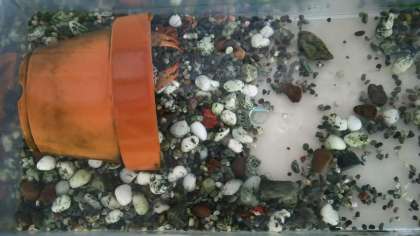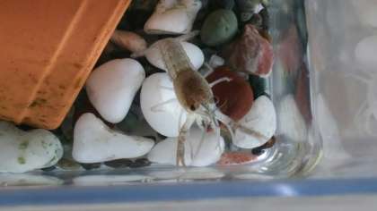 暑い日が続いています。2年生と3年生がお世話をしている、3匹のザリガニたちも元気に過ごしています。上の写真が、去年から居る3年生のザリガニのハサミの写真です。中央の写真には、2年生の小さなかわいいザリガニが二匹、写っています。どこに居るのか、探してみてください。下の写真はその内の一匹です。