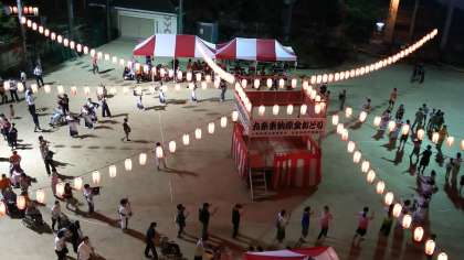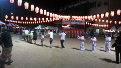 開始早々、たくさんの方々のご来場があり、みなさん、盆踊りに参加されて、大変盛り上がっています。東っ子たち(卒業生も在校生も)もたくさん、来てくれています。