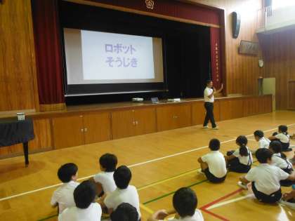 6年生代表のあいさつに合わせて、全員で朝の挨拶を行ったあと、校長先生から転入生(5年生の女子が1名)の紹介があり、講話がありました。当番の先生からは今月の生活目標について「今学期、担当になった係や掃除当番をみんなで協力してしましょう」等のお話がありました。
