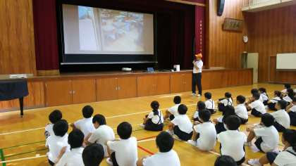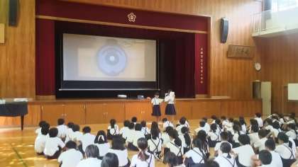 6年生代表のあいさつに合わせて、全員で朝の挨拶を行ったあと、校長先生から講話がありました。保健室の先生から熱中症予防に関してお話があり、健康委員会から今学期の「せいけつ検査」のお知らせがありました。当番の先生からは今月の生活目標についてのお話がありました。