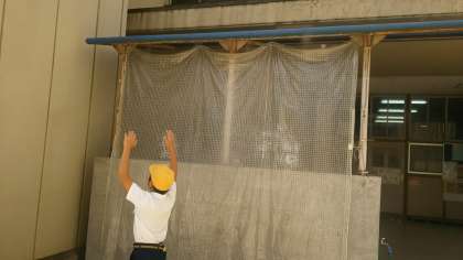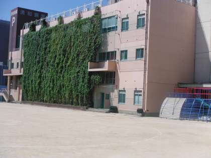 ※休憩時間の運動場の様子です。写真からも暑さが伝わってきます。体育的活動や外遊びも制限することが多くなっています。下の写真は保健室前に設置している「ミスト」です。