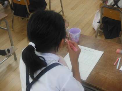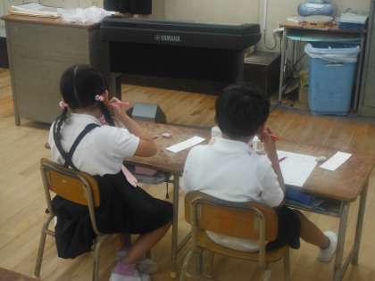 昨日〔9月10日(火)〕、歯科校医の先生と教育委員会の歯科衛生士に来校いただき、2年生と4年生、6年生に歯みがきの指導や歯垢チェックなどの授業を行いました。2年生は「しこうチェックカード」、4年生は「歯ッピーカード(フッ化物とふ)」、6年生は「歯・口の健康教室チェックカード」を作成しました。どの様な授業だったのか、ご家庭で話題にしてください。