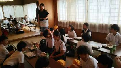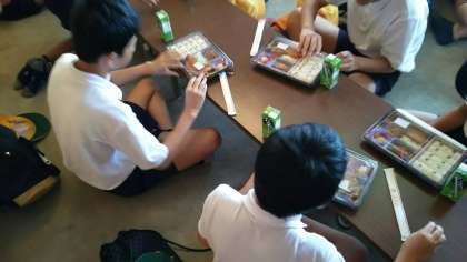 お昼ご飯はお弁当です。宗陶苑に部屋をお借りして食べます。修学旅行最後の食事です。