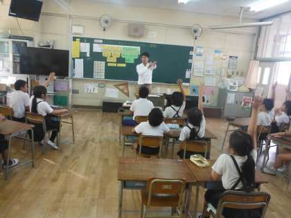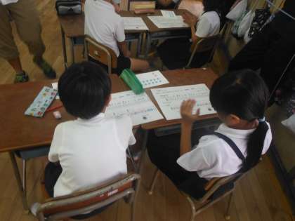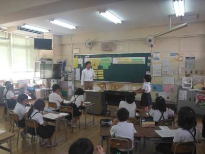 昨日〔9月17日(火)〕の6校時、3年生で音楽の研究授業を行いました。「かけっこ」や「おうえん」、「かつぞ」等、運動会への思いを言葉で表現し、三・三・七拍子を例に「くりかえし」や「変化」といった音楽の仕組みを学んで、みんなでリズム作りに取り組みました。終盤では二人一組になり、それぞれが作ったリズムを聴き合いました。次の授業ではみんなが作ったリズムをつなげる予定です。