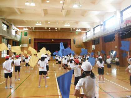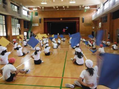 今週から運動会の練習が始まりました。高学年は今年はフラッグを使った演技を披露する予定です。初めて使う道具にまだまだ慣れない様子でしたが、これからの練習に期待です。
