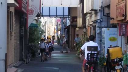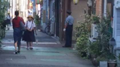 今朝は警察官の方に商店街の中で見守り活動を行っていただきました。昨日に引き続き、連日、ありがとうございます。朝はお店が、まだ空いていないため、かなりのスピードで自転車が中央大通りに向かって走ってきます。商店街の出口とともに登下校時に特に注意が必要な場所です。
