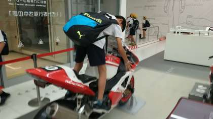 ・鈴鹿サーキット…ここで本当にレースをしているんだと思った。迫力があって、とてもリアルだった。レーシングシアターでは自分がレースをしているみたいで楽しかった。(ピットの)空気入れやタイヤ交換がとても早かった。レースのクルーがすごく協力していて、良いと思った。レース時のバイクの風が体験でき、レーシング風速メーターを見て、とてもすごいと思った。ものすごい風の中を何時間も走れるのがすごい。レーサーって大変だと思う。レースの体験をしてレーサーはこんなに怖いのだと感じた。