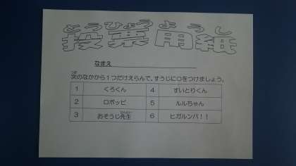 名前の候補が6つに絞られ、玄関ホールに投票箱が設置されました。投票状況を見ながら、来週のどこかで投票を締めきりたいと思います。さてさて、どの名前になるのでしょうか?