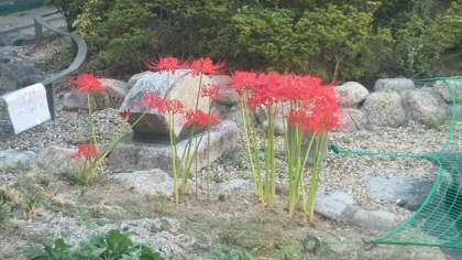 先週のある新聞のコラムに「…気象庁が観測している18ヵ所のうち、14ヵ所で平年よりも開花が遅れているという。彼岸花が、お彼岸に間に合わないところも出てくるか」と書かれており、本校の彼岸花も今週、ようやく開花しました。