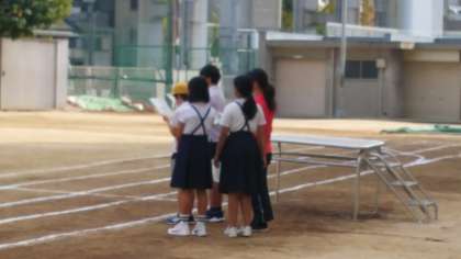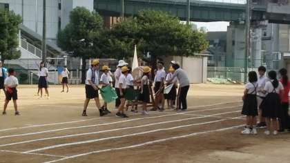 昨日の6校時の運動会の準備風景です。4〜6年生が7つの係に分かれて、運動会全体を運営していきます。各係の最終確認が行われました。上の写真が運営係(開会式等の準備)、中央が左から応援団・救護係(旗の移動)・運営係、下が救護係(国旗・校旗掲揚)です。