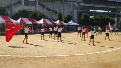 本日〔10月10日(木)〕の応援合戦の全体練習の様子です。応援団と全校児童が、みんなの心を一つに合わせて、しっかりと応援ができていたと思います。運動会当日の演技・競技は、子どもたちの応援合戦から始まります。保護者のみなさま、盛大な拍手と温かいご声援をよろしくお願いします。