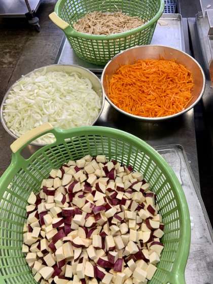 ごぼう、たまねぎ、にんじん、みつば、そして旬のさつまいもが入りました。